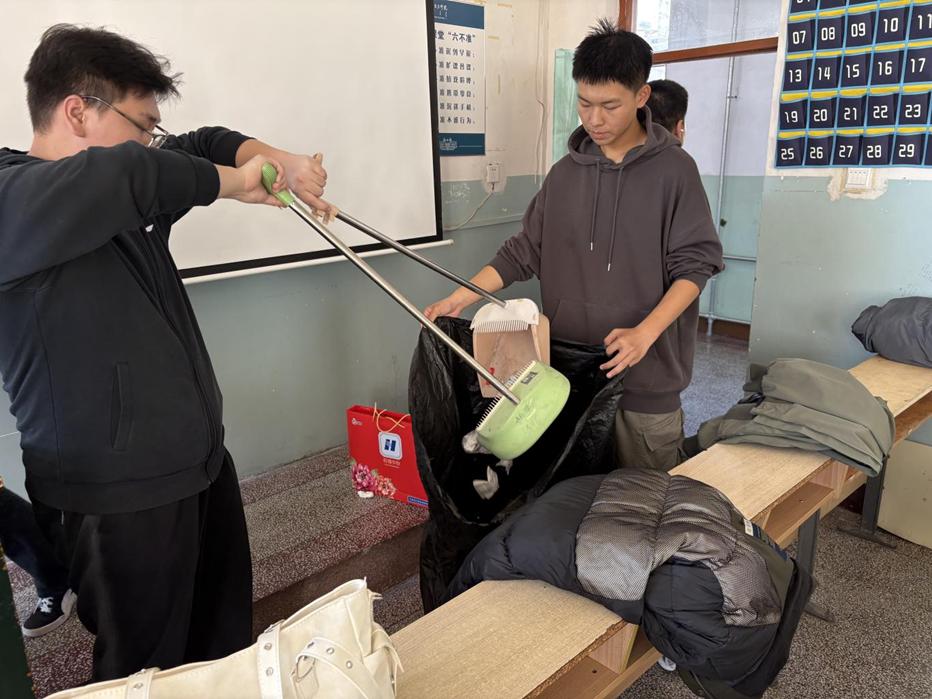 学院领导及辅导员下沉至各个区域,通过现场指导与细致检查,引导学生树立良好生活观念,共同守护安全有序的居住空间。历时几个小时,同学们齐心协力、辛勤付出,让每一处区域都变得整洁清爽,既改善了日常居住环境,也为校园风貌的提升增添了亮眼一笔。