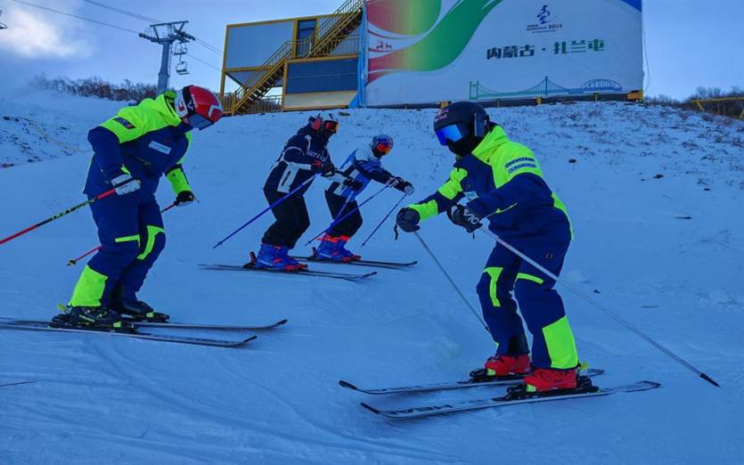 与此同时,学院冰雪运动系主任王荣林带领我校滑雪队运动员在扎兰屯金龙山滑雪场开展赛前备战训练。训练聚焦第12届全国大学生滑雪挑战赛核心项目,每日开展6小时以上封闭式集训,围绕技术动作打磨、体能强化、战术配合及模拟竞赛等关键环节展开,涵盖旗门技术、陡坡滑行、紧急处置等专项训练,同步搭配视频技术分析与体能强化模块,为赛事蓄力。