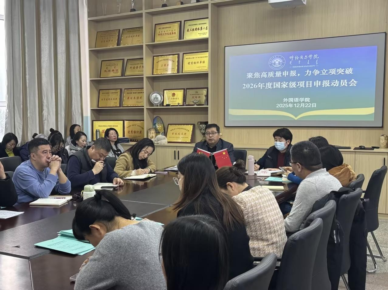 本次动员会标志着外国语学院2026年度国家级项目申报工作全面启动。后续,学院将根据学校统一安排,有序推进申报论证、材料提交等各项工作,为教师提供有力支持与服务,力争圆满完成申报任务,助力学校科研事业再上新台阶。