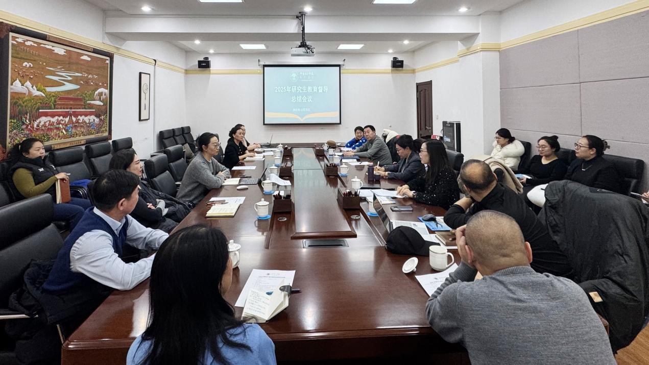 12月25日下午,在逸夫楼419会议室召开本学期研究生教育督导总结会议,会议由研究生处处长姜明红主持,全体督导专家、各培养单位院长、分管副院长、研究生办公室主任及研究生处全体人员参加了会议。