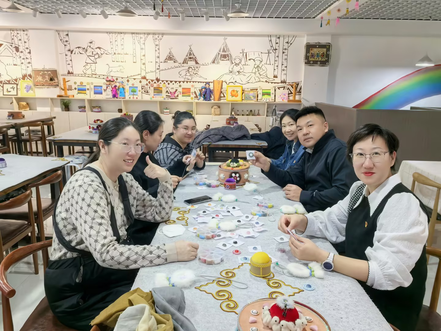 为进一步丰富党支部组织生活内涵,厚植党员文化自信,在岁末年初为党员送上暖心祝福,12月27日下午,团委党支部开展了“感受非遗魅力 民族团结绽芳华”主题党日。党支部全体党员走进鄂温克族非遗文化基地,体验传统手工艺制作,亲手学习制作鄂温克族非遗饰品“太阳花”,在指尖传承中凝聚民族团结力量。