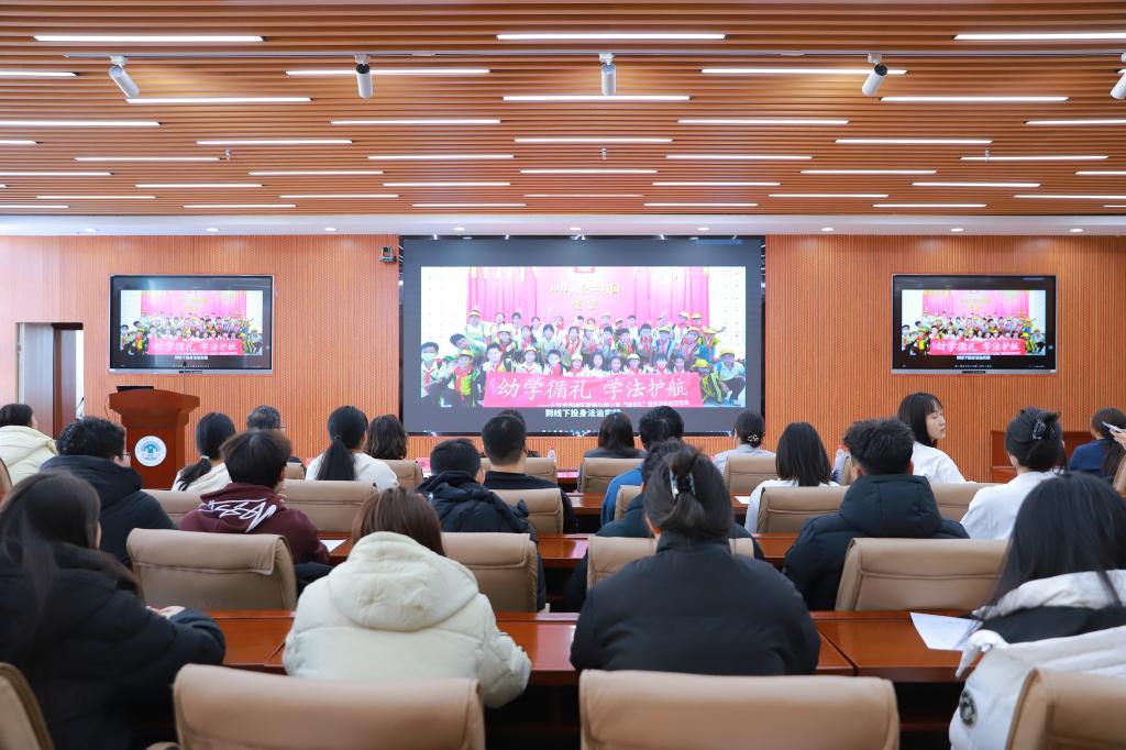 12月4日上午,教育部举行2025年国家宪法日教育系统“宪法晨读”活动。我校在崇文楼A501会议室组织师生在线收看直播,党委宣传部、学生工作处、法学与经济管理学院负责同志及师生代表共70余人参加活动。
