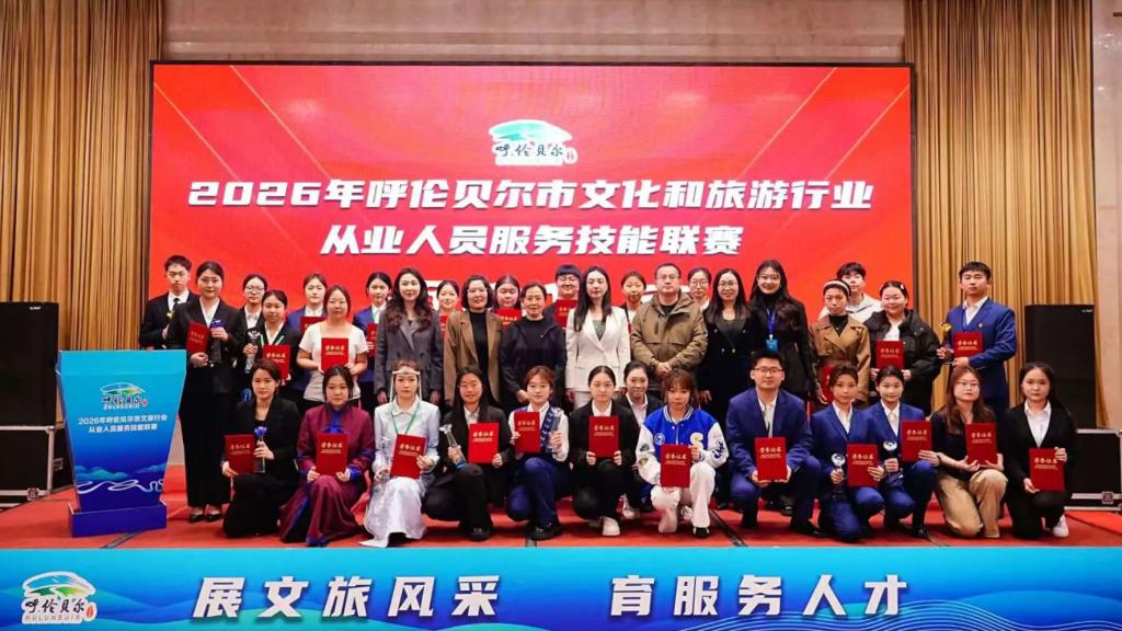 4月11日至13日,2026年呼伦贝尔市文化和旅游行业从业人员服务技能联赛在呼伦贝尔市宾馆举办。本次大赛由市文化旅游广电局、市商务局、总工会、共青团市委、市妇联联合主办,呼伦贝尔学院和呼伦贝尔职业技术学院协办,是全市文旅领域规模大、规格高、专业性强的权威技能赛事。我校高度重视、精心组织,在导游组与星级饭店服务组两大组别中均取得优异成绩,充分彰显了学校的育人实力与学子风采。