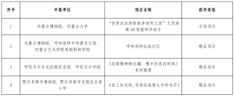 近日,国家文物局、教育部公布了2025年度以中国人民抗日战争暨世界反法西斯战争胜利80周年为主题的“大思政课”优质资源建设推介项目名单,内蒙古自治区共有四个项目入选,我校斩获两项荣誉:“世界反法西斯战争胜利之旅”大思政课AR智能研学助手入选示范项目,“抗联精神映北疆,携手同筑共同体”系列微课入选精品项目。