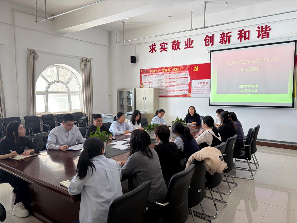 为深入学习贯彻习近平总书记关于树立和践行正确政绩观学习教育的重要指示精神,切实把全院教师思想和行动统一到党中央及学校党委决策部署上来,3月11日,蒙古学学院召开树立和践行正确政绩观学习教育启动部署会。学院党委书记格根塔娜主持会议并作动员部署讲话,学院全体教师党员参加会议,确保学习教育覆盖无死角、部署无遗漏。