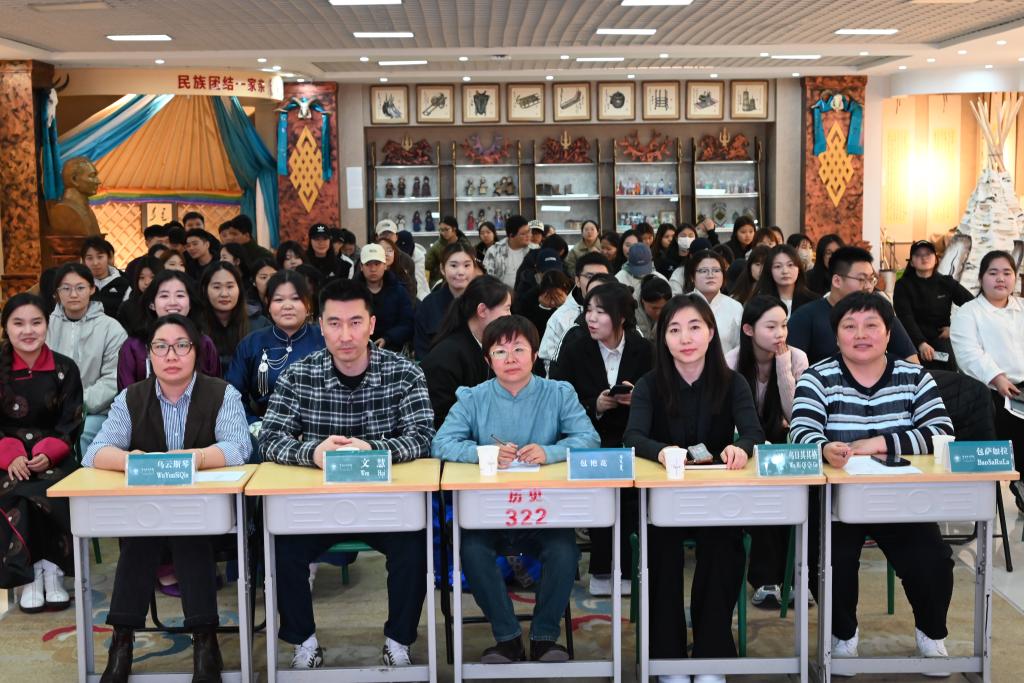 为迎接第31个世界读书日,营造浓厚的校园书香氛围,推动经典文化传承与阅读风尚建设,4月22日下午,蒙古学学院在崇文楼B小剧场成功举办“经典重读•文化传承”读书分享会。本次分享会以比赛形式进行,学院学业导师包艳花、包萨如拉、乌日琪琪格、文慧、乌云斯琴等五位博士担任评委,活动共有16名学生登台分享阅读心得,60余名学生到场聆听,现场氛围热烈且温馨。